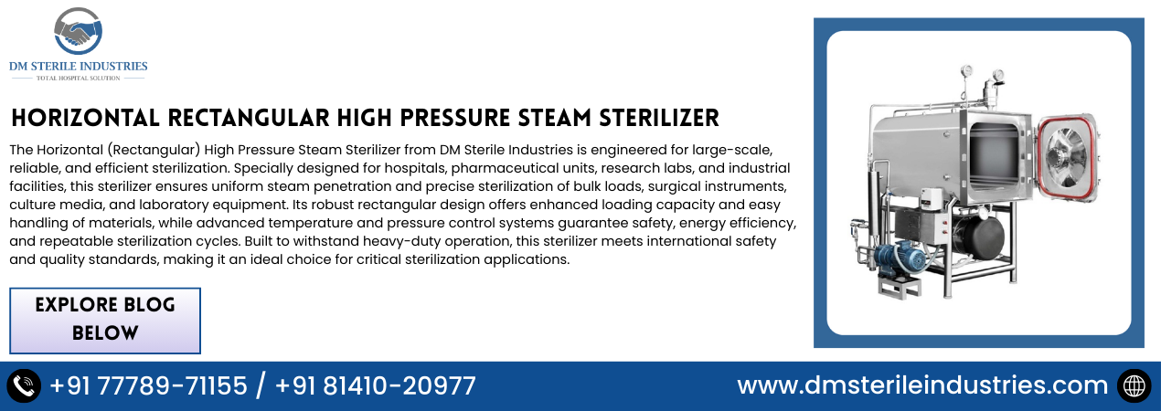 A Horizontal Rectangular Steam Sterilizer Autoclave Manufacturer in India plays a vital role in supporting healthcare, pharmaceutical, research, and industrial sectors. These high-pressure steam sterilizers are engineered for large-capacity loads, consistent temperature control, and compliance with stringent regulatory standards. With stainless steel construction, precision control systems, and integrated safety mechanisms, rectangular autoclaves deliver reliable performance for bulk sterilization applications.