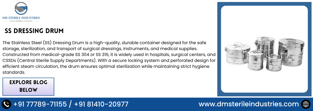 SS Dressing Drum in Gujarat continues to be an essential product for healthcare sterilization and sterile storage requirements. Its practical design, durable stainless steel construction, autoclave compatibility, and wide application make it a dependable solution for hospitals, CSSD departments, clinics, and laboratories.